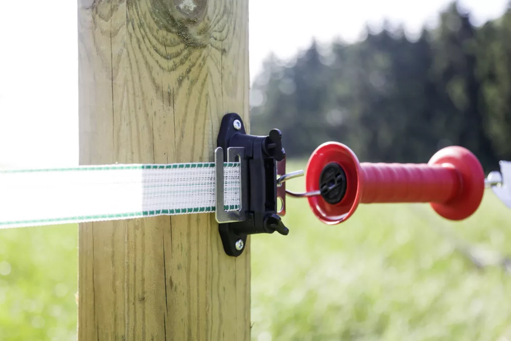 - Megbízható szalagszigetelő nemesacél csatlakozólemezzel kapufogók beakasztásához, valamint villanypásztor-készülék csatlakoztatásához