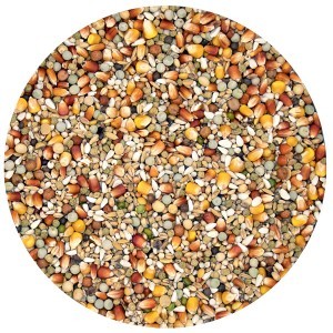 vörös kukorica 18%, prémium cribs kukorica 6%, kicsi cribs kukorica 2%, pirított szójabab 5%, juharmag 3%, kis zöldborsó 6%, bükköny 2%, mungóbab 1%, fehér galamb búza 11%, fehér cirok 10%, vörös cirok 3%, sáfrányos szeklice 12%, hántolt árpa 2%, hántolatlan rizs 3%, hántolt zab 2%, kendermag 2%, hajdina 2%, barna lenmag 1%, repcemag 1%, fekete káposztarepcemag 2%, pellet I.C.⁺ 6%