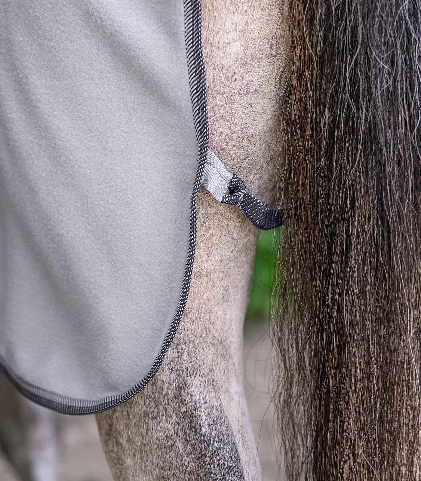 - A takaró praktikus T-alakú elülső rögzítéssel, farokzsinórral és vonzó szegéllyel rendelkezik.